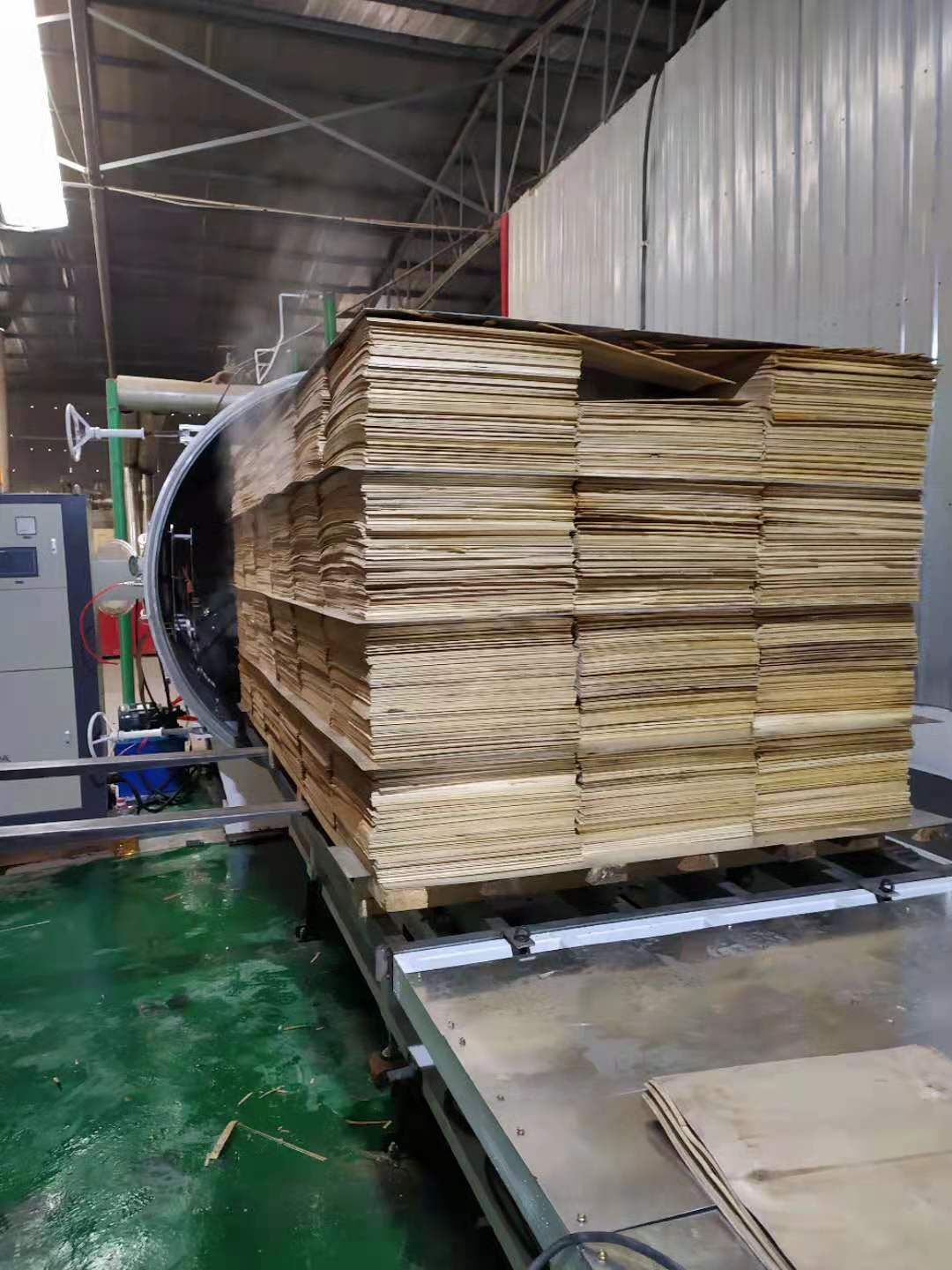 3、干燥機頂部裝有液壓系統,對干燥材堆施加壓力,同時防止木材變形。