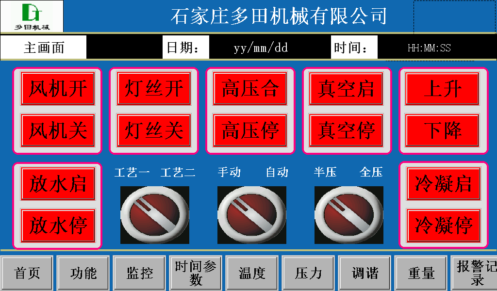 1、采用PLC與觸摸屏程序自動控制,各種加熱參數設置簡單明了,木材烘干過程可無人值守完全自動控制。